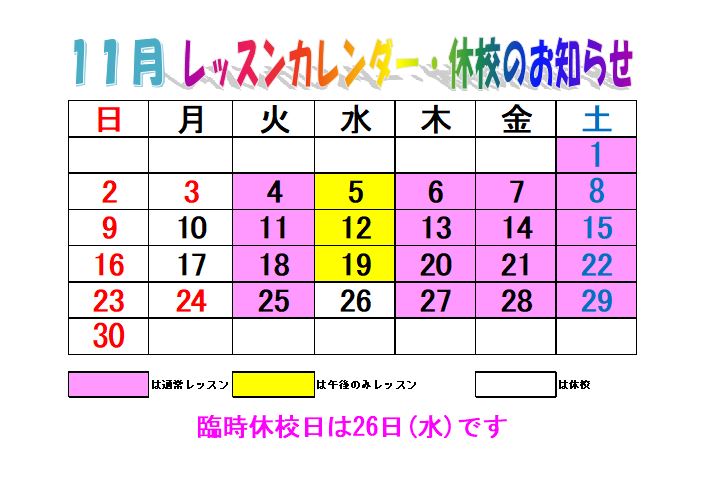 毎週 日曜日・月曜日・水曜日午前は休校です。